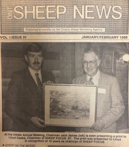 There was the Ontario Sheep Association, with 700-800 members that was funded through a voluntary check-off through the sales barns. At an annual meeting of the OSA in November 1983, a resolution was passed requesting the Ontario Farm Products Marketing Board develop and implement a marketing plan for sheep. In response, the Minister of Agriculture appointed a commission of three sheep producers – Jack James, Walter Renwick and Garth Noecker to speak to producers and build a plan.